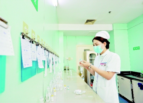 山西省煤炭中心医院呼吸与危重症医学科副护士长赵永慧正在查房看液体、核对液体配药。 赵永慧在工作中敬业勤奋,受到患者的一致好评。她被中共山西省卫健委直属机关委员会授予“优秀共产党员”称号、被中共中央宣传部评为“全国岗位学雷锋标兵”、在省卫健委护理领域标准规范竞技活动总决赛中荣获三级医院“成人氧气吸入疗法护理”组 “优秀案例奖”。本报记者师萟摄